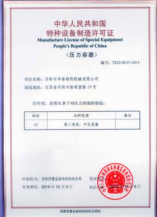 10月22日至24日,中國特種設(shè)備檢驗協(xié)會專家組對丹陽市華泰制藥有限公司A2級(Ⅲ類)壓力容器制造資質(zhì)進行了全面的評審。